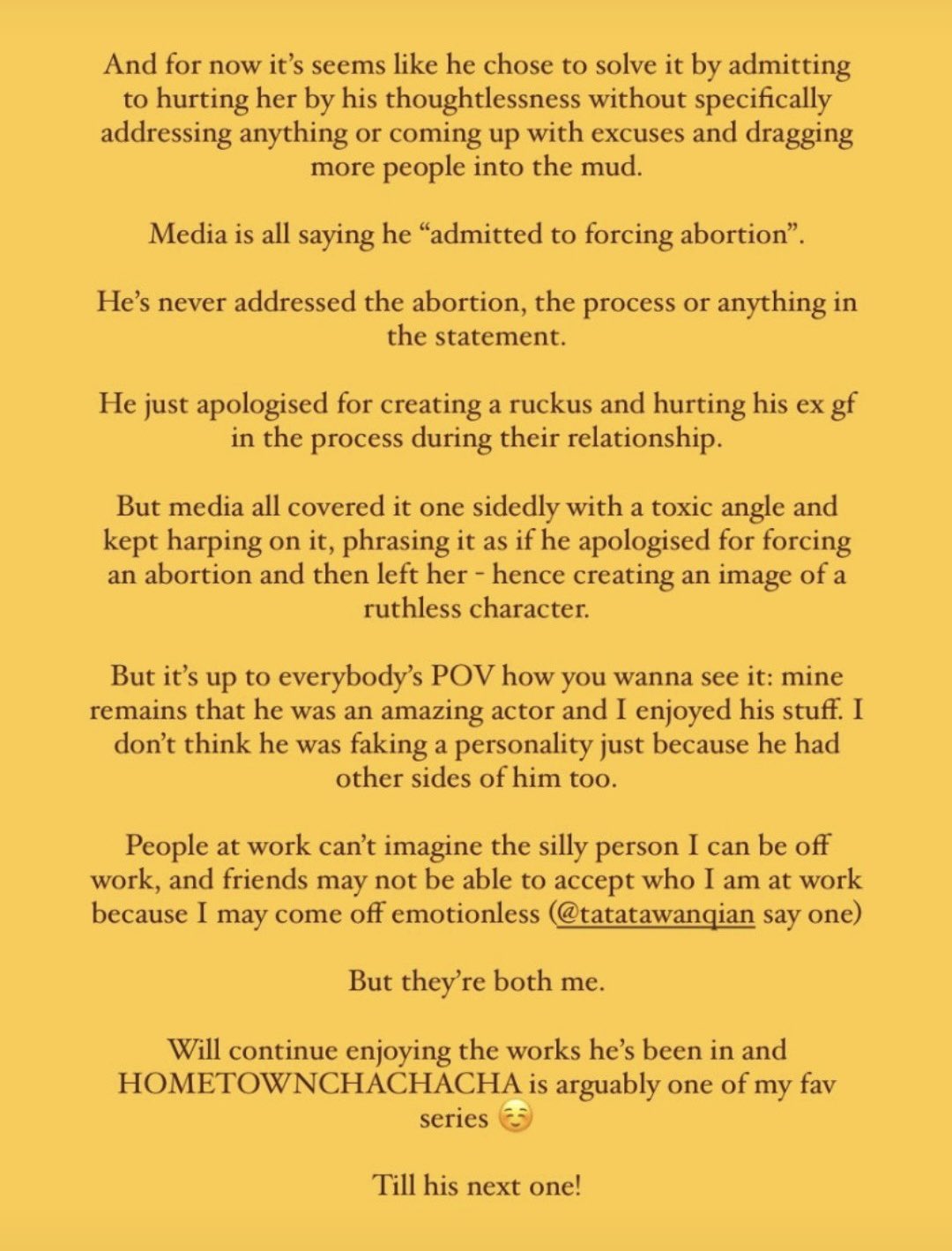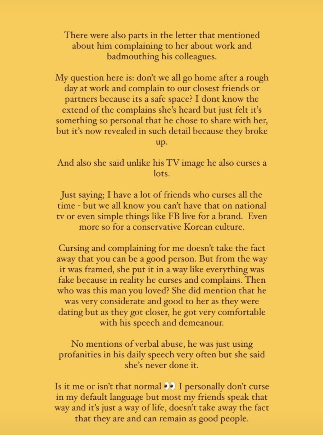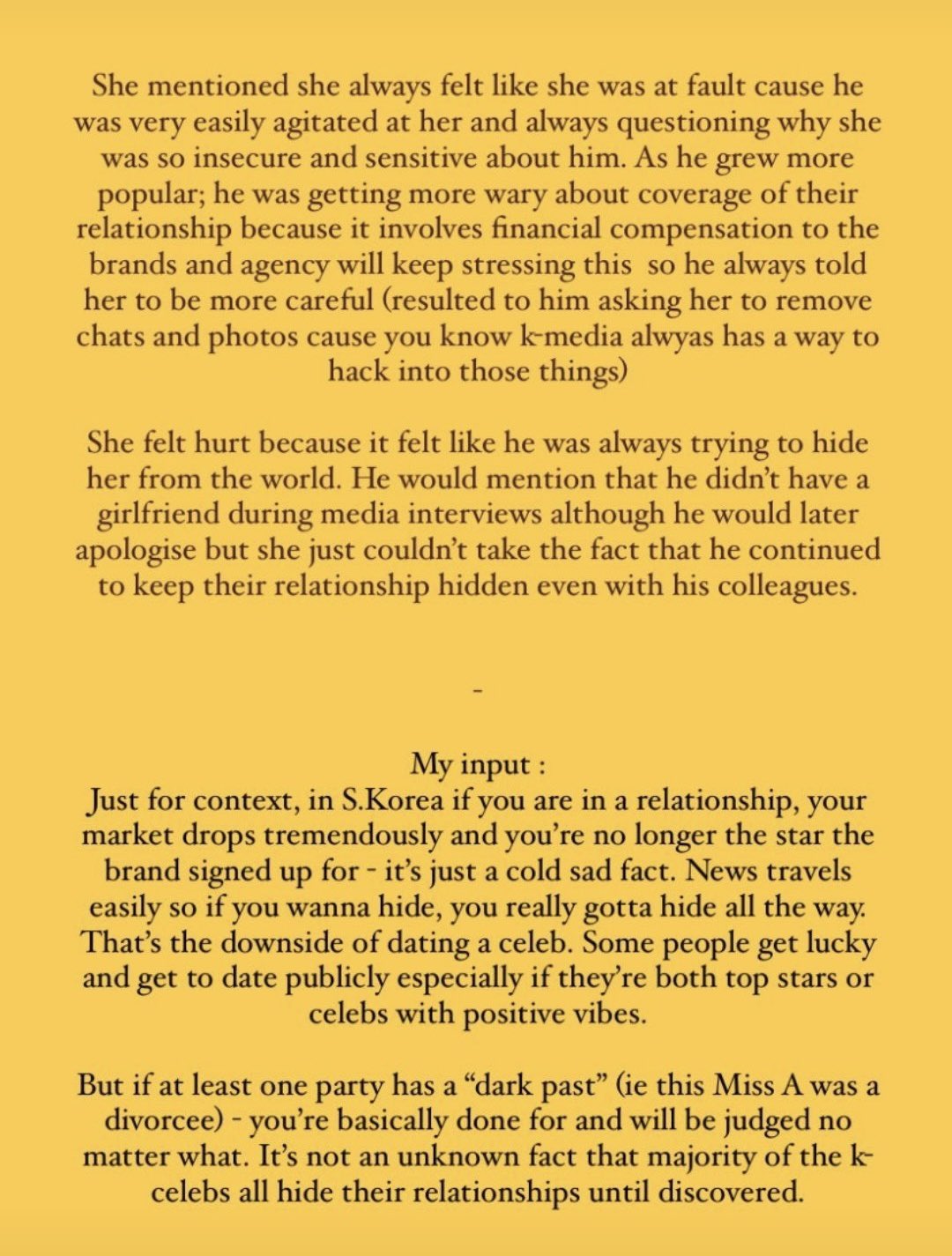 I don’t understand how Korean companies without knowing the whole story can cancel out completely a person. - Such relationship drama doesn’t belong to the public but to the parties concerned only those can solve their problems, not the public!