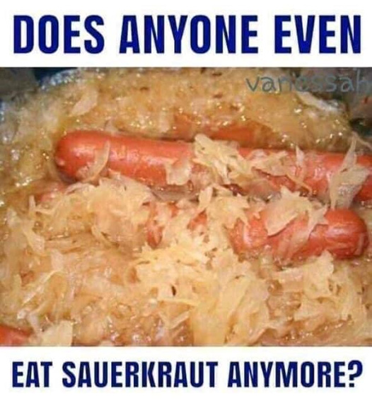 I dunno about sauerkraut. The first time someone was eating that and wanted me to try it - straight out of a can/ STINKY! and SUPER SALTY! BLAGH! Smelled like rotten brine. uh, no. Pass. I don’t know how people can eat stuff that salty! That will ■■■■ your blood pressure right out your ears if you eat too much of it.