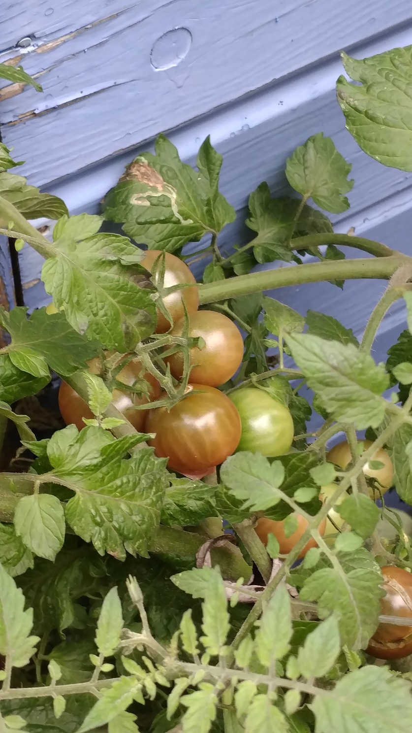 If you have green tomatoes and they are like fully grown but green, put them in a dark paper bag and keep them in a dry place, they will ripen. I picked my son’s tiger tomato and they are ripening nicely. - I also have the orange kinda cherry tomatoes, should I cut some stems ![]()