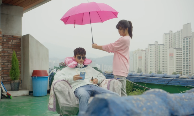 Ok, this one has got to be one of the funniest ‘umbrella’ scenes, it’s from The Boy Next Door,They aren’t trying to stay dry, they’re hiding from someone. It’s a short web drama only 1-1/2 hrs in total, and so funny.