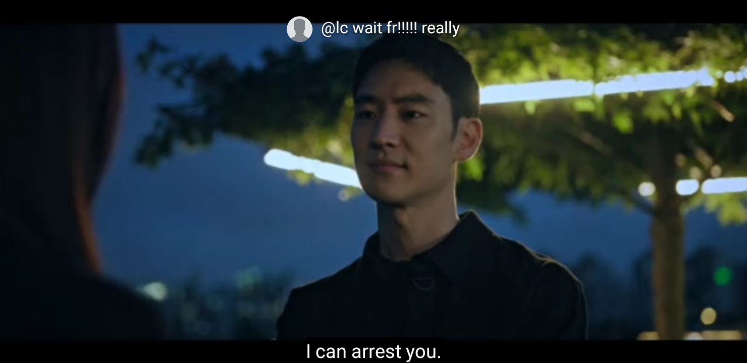 Good to know some Korean. She says that she can’t arrest him due to lack of evidence.