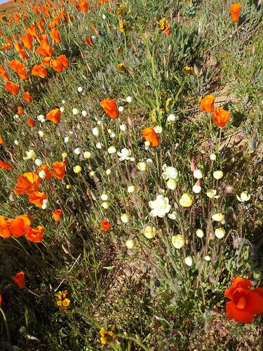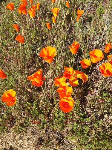 California poppies are blooming in the high desert of Mojave. They make the desert fields pop with color!