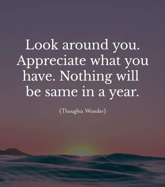 oh my goodness, take a walk, enjoy the day, be ity chilly or warm, meet 10 people and say HI, give a smile, you are alive, pain and all, you can see, hear, feel touch, in your right mind, got food, clothes, a roof over your head, I LOVE YOU keeps coming out in the little things, children’s laughter, cats & dogs antics, need I say more???