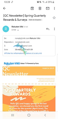 Do you mind writing me the sender. I would check, to see if there was anything in the past months. Summer or autumn I stopped getting QC mails, then came the QC gift “accident” and then a Viki team member verified my mail address for me. And after that I get notifications again, but no QC news letter.