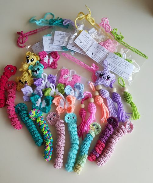 These pendants/ornaments somehow remind me the ones that nobles carry in historical dramas around their waste, mostly Jade pendants. The crochet items are so cute and would look great on your bag, backpack perhaps even in your hair. ![]()