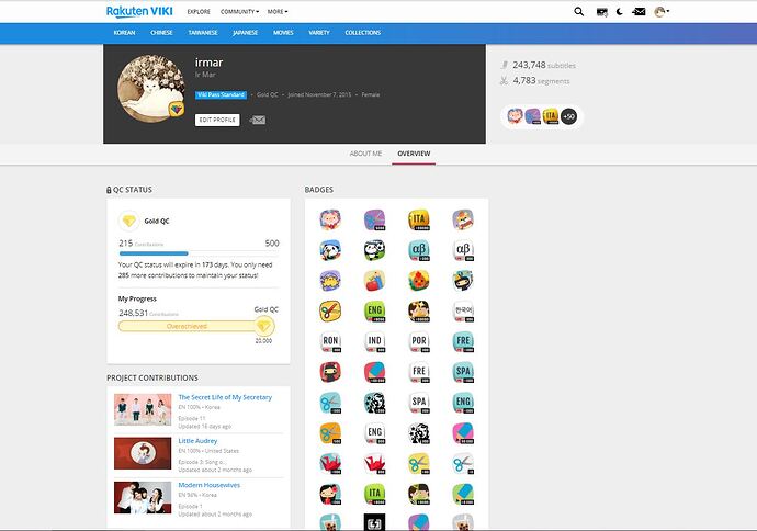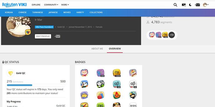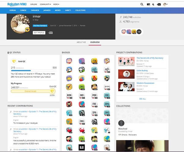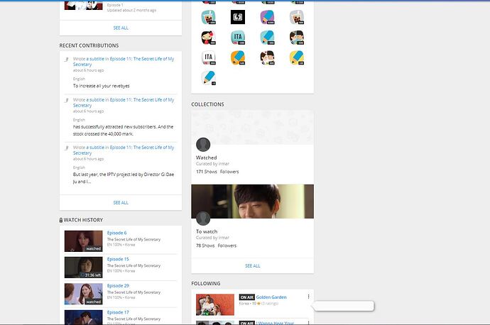 - The right column is completely empty. Why? When the really useful things, i.e. Contributions, the one that we all go for when we visit someone’s page, as well as Collections, that we use often, especially those of us who have put in Collections the “Dramas watched” and “Dramas to watch later” are buried down under the badges. If you have many badges, this means quite a bit of scrolling. Why not put the badges on the far right column and the Contributions in the central one.