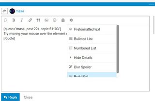 Ah… That was my suspicion. But my drop-down list does not have the last option - build poll - that your screenshot shows. Wonder if it’s due to different versions of Discourse or something else…