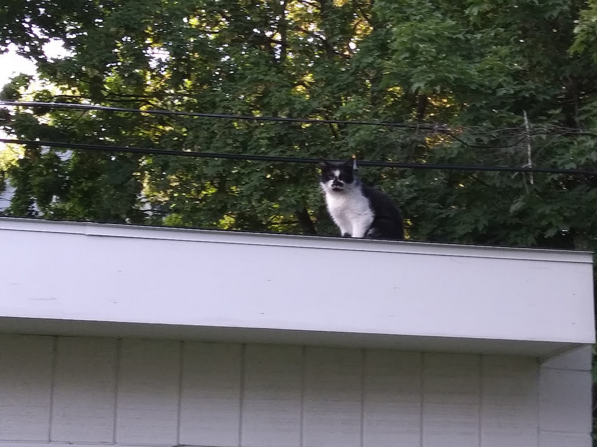 She is part of a population of what are known in the “hood” as garage cats. They are not feral; they willingly eat what is left out for them and sun themselves wherever they please. I have a suspicion that many of the current crop of cats that live on my block are descended from the female kitten a neighbor of mine twelve years ago got somewhere for her kids . . . and did not spay . . . and did not keep indoors.