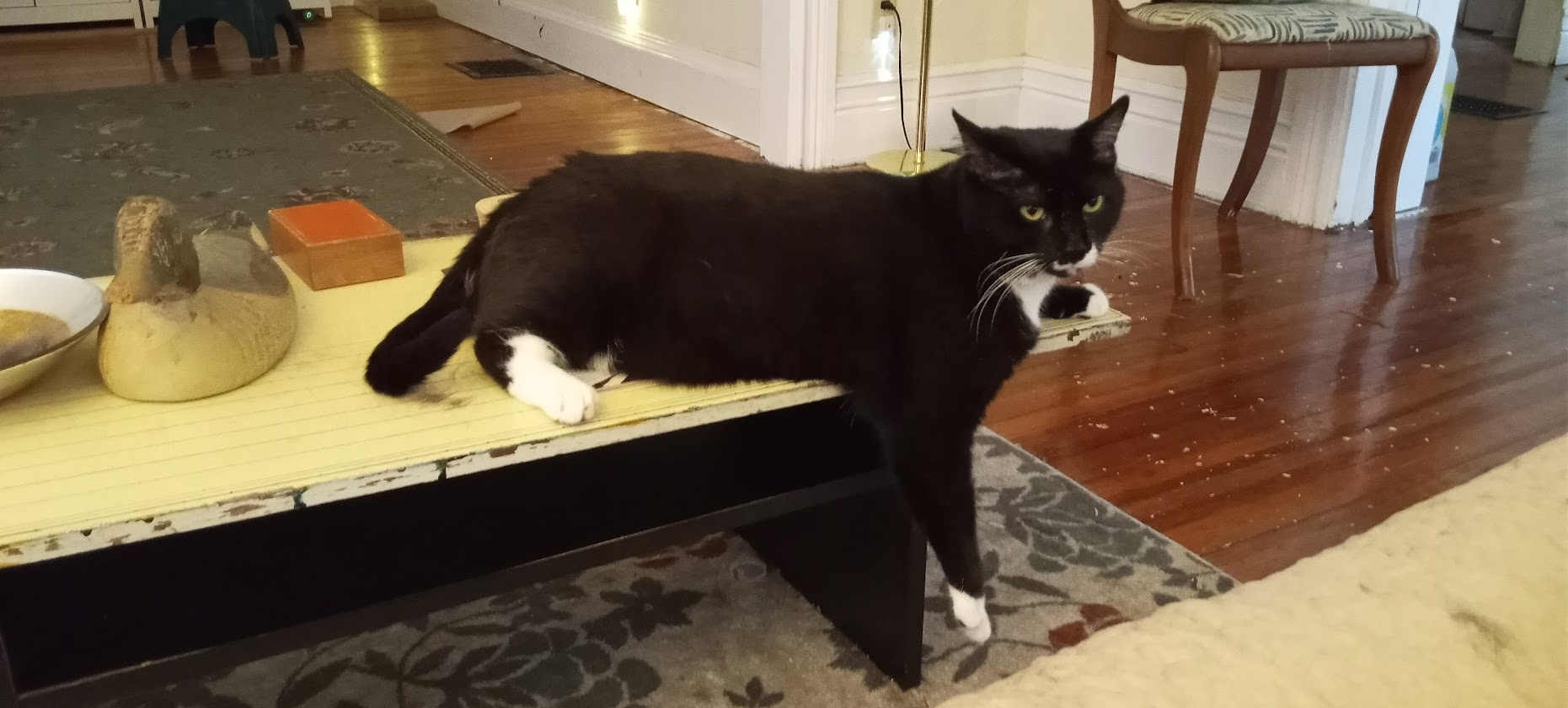Currently I am also slave to his uncle whom I named Mr. Boo-boo because of a white stripe on one leg that looks like a bandage. He started living on my porch during the winter two years ago.