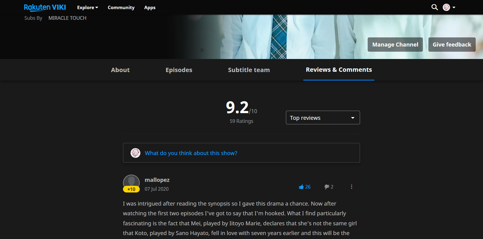 I already didnât have the option of clicking directly on the Viki logo when on the contribution page, even before this new version. So I first click on Discussions and from there on the Viki logo. Works very well if you plan to do hard work subbing and then end up on the discussion forum, hahaha.
