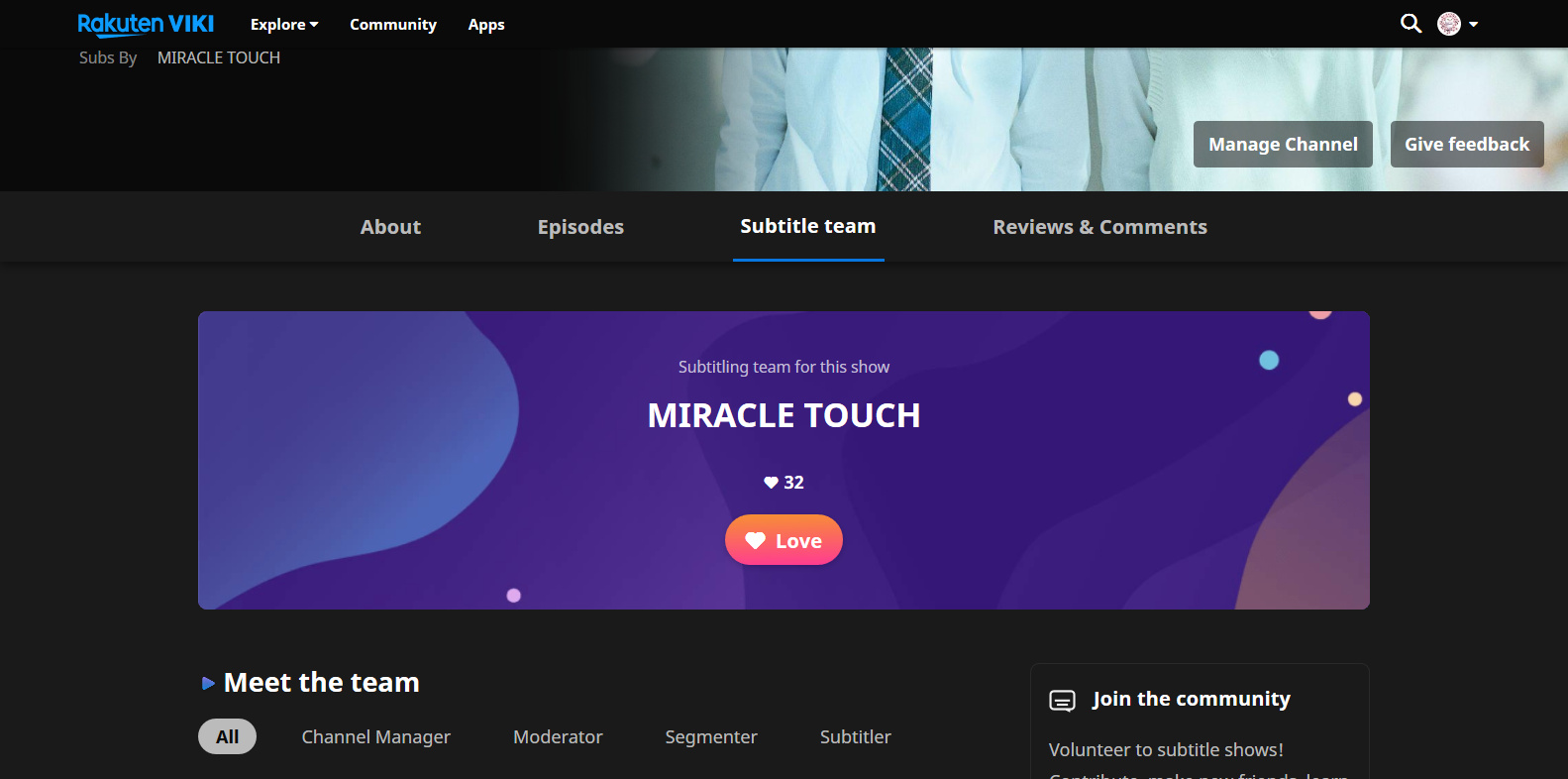 I think it is nice that all team members (channel manager, moderators, segmenters and subtitlers) are listed now.