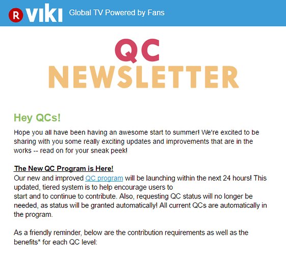 I remember awhile back, Viki was talking about setting up a new QC program with different tiers/levels (QC trainees, QCs, QC gold, stuff like that) that was also at least semi-automated. At least, they sent out some info to current QCs about it.