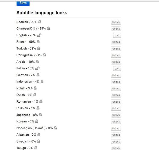 Only each Language Moderator can lock the respective language even though we don’t have subs created ![]()