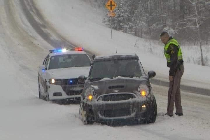 The car’s speedometer was showing 20-30-40 and then 50 MPH, but it was still stuck in the snow, wheels spinning. Trooper Nixon, having a sense of humor, began running in place next to the speeding (but stationary) car.